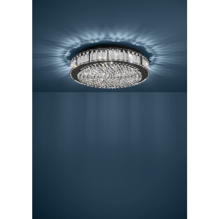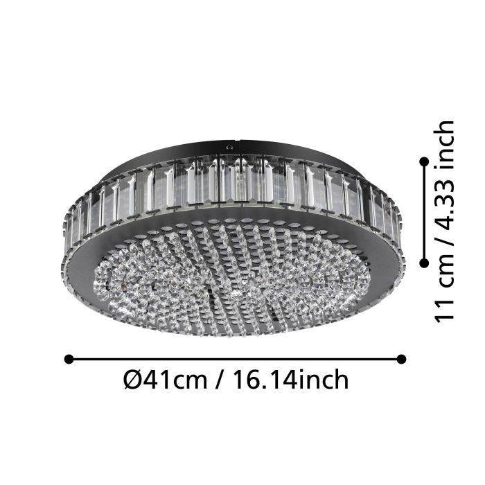 Φωτιστικό Πλαφόν Οροφής Ø41xH11cm Led 23,5 watt 3500lm Neutral Dimmable Μαύρο-Διάφανα Κρύσταλλα Eglo Balparda 390248