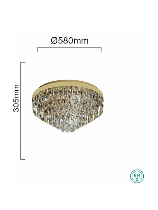 Φωτιστικό Πλαφόν Οροφής Ø58xH30,5cm Ενδεκάφωτο 11xE14 Χρυσαφί -Διάφανα Κρύσταλλα Eglo Valparaiso 39458