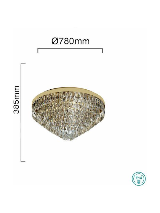 Φωτιστικό Πλαφόν Οροφής Ø78xH38,5cm Δεκαεξάφωτο 16xE14 Χρυσαφί -Διάφανα Κρύσταλλα Eglo Valparaiso 39459
