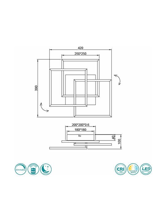 Φωτιστικό Πλαφόν Οροφής 42x39xH10cm Led 27w 1x3200lm 2700-6000K Black Mat Trio RL Mobile R62883132