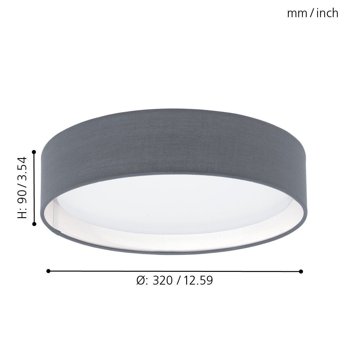 Φωτιστικό Πλαφόν Οροφής Led 3x3,6w 1100lm Warm White Ø320xH190mm Νίκελ Ματ- Ύφασμα Γκρι-Γυαλί Eglο Pasteri 31592