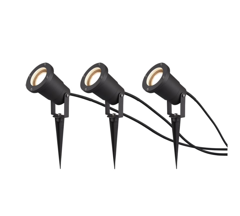 Inviting and effective - the URBANGI outdoor lights set atmospheric lighting accents around the house. The decorative set of three has a five metre long supply cable and three metre long cable connections between each spotlight. Each spotlight has a ground spike so that they can be positioned flexibly and easily in your garden. Each spotlight has a diameter of approx. 9 cm and is extremely weather-resistant thanks to its IP65 protection rating. Thanks to the discreet anthracite colour scheme, the outdoor lights can be stylishly integrated into a variety of garden concepts. For energy-saving lighting, it is recommended to use an LED illuminant. These are an optimal alternative to conventional halogen lamps and stand for a high quality of light and energy savings of up to 80%. In addition, LED lamps help you benefit from a long service life, low heat generation and at the same time protect the environment.