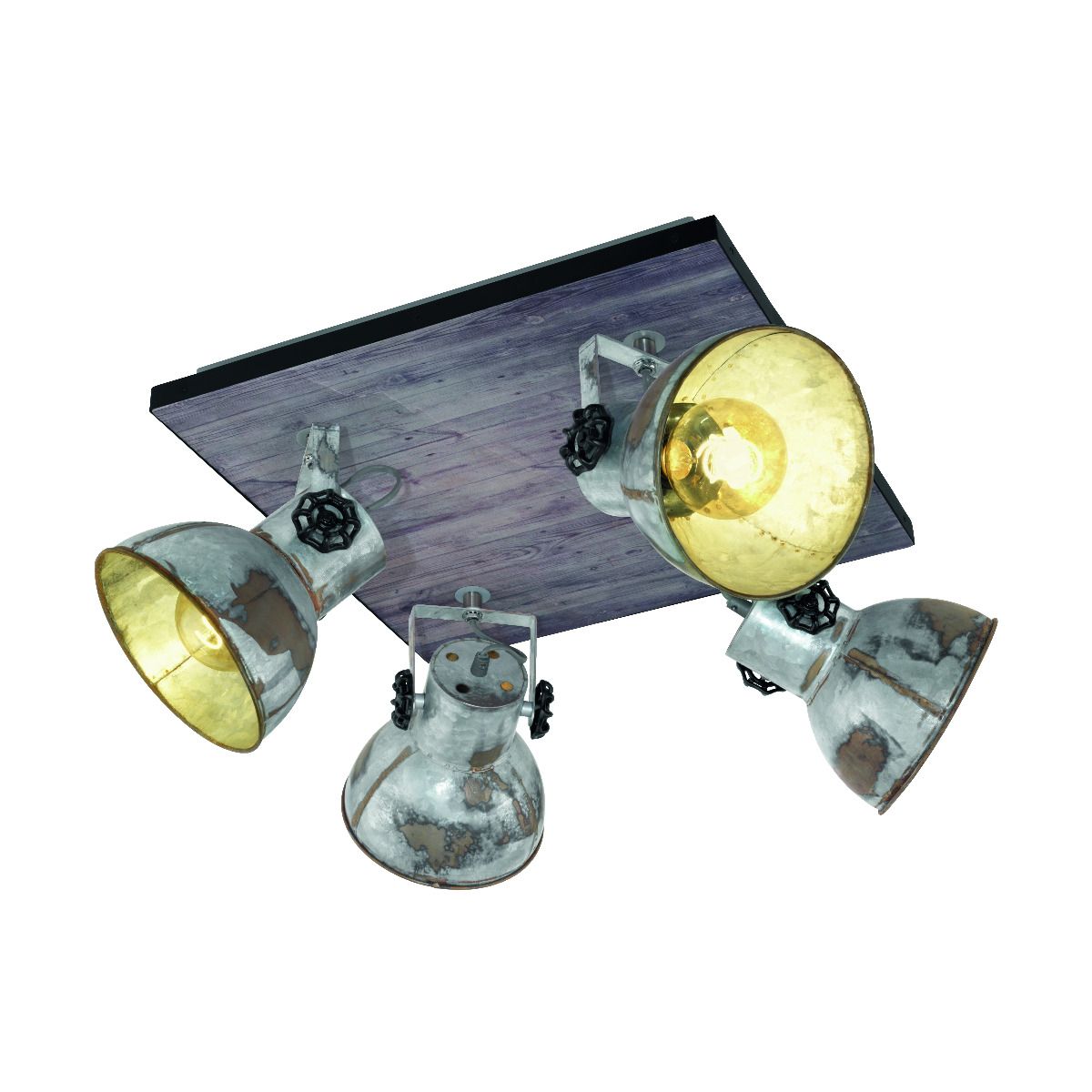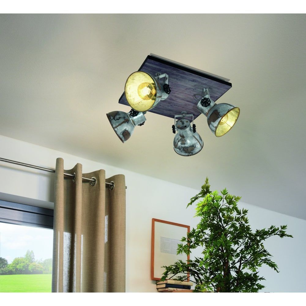 Φωτιστικό Σποτ Οροφής Τετράφωτο 45*45cm Vintage Industrial Μέταλλο -Ξύλο Πατίνα Eglo Barnstaple 49653