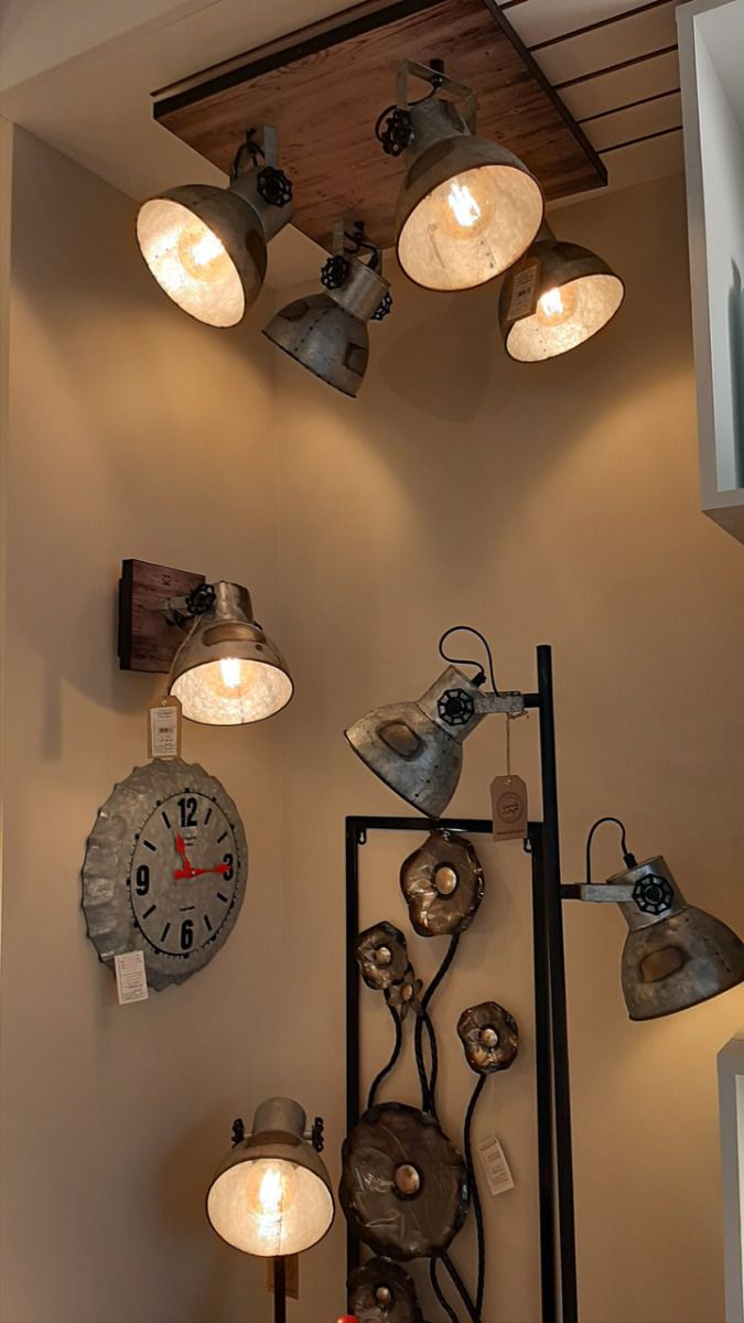 Spot,wood, steel, brown-patina, black /steel, used look Zinc.