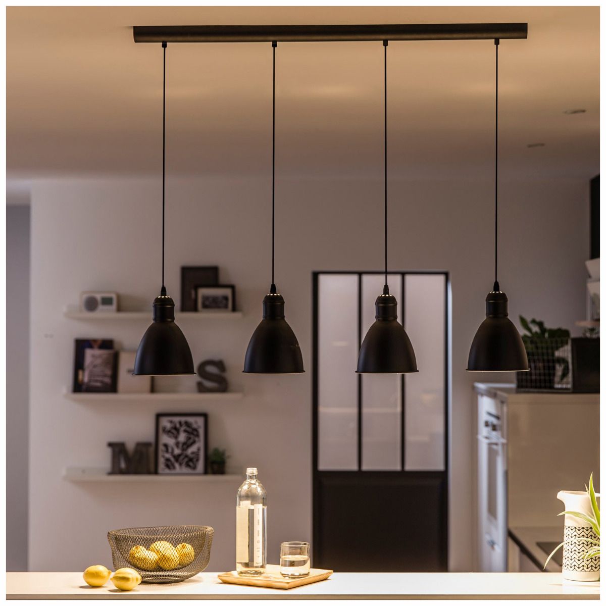 Φωτιστικό Τετράφωτο Vintage Ράγα 97,5 εκ. Ατσάλι Μαύρο Εξωτερικά Λευκό Εσωτερικά Eglo Priddy 49466