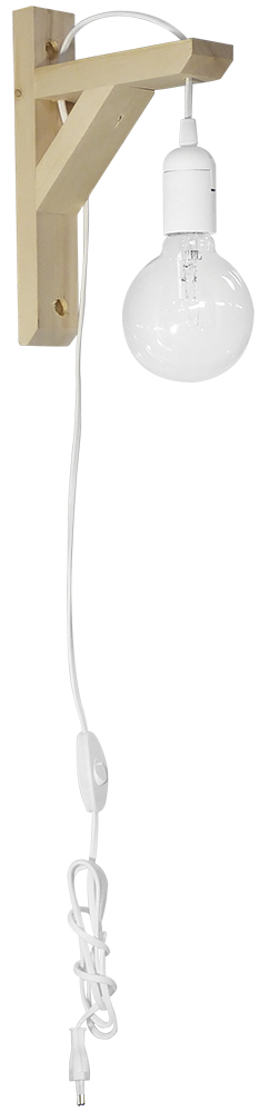 Φωτιστικό τοίχου / απλίκα ξύλινη με καλώδιο λευκό & διακόπτη για πρίζα ,ντουί Ε/27 Δεν συμπεριλαμβάνεται ο λαμπτήρας