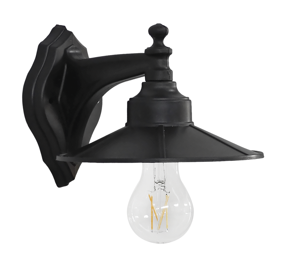SEIRA PETRA /Απλίκα τοίχου LP-150A-S BLACK Τεχνικά χαρακτηριστικά Πλαστική απλίκα Χρώμα black / Μαύρο Η14,5cm x 24cm x Φ18 E/27 max 10w LED IP23 Ελληνικό Προϊόν