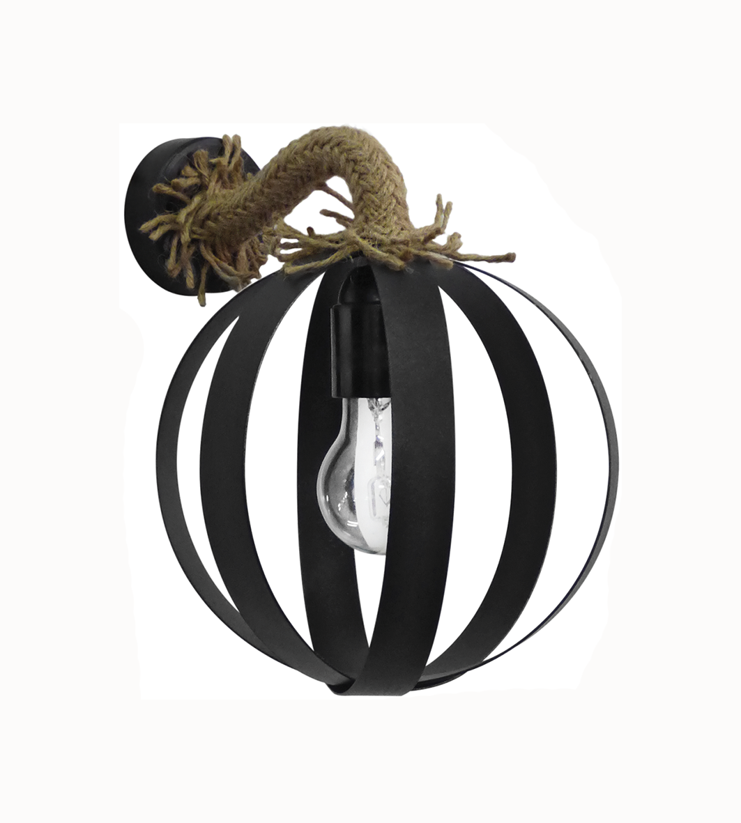 Απλίκα με φυσικό σχοινί και μεταλλική μπάλα μαύρη LAMA/AP ROPE UT-BL Τεχνικά χαρακτηριστικά Σχοινί φυσικό & μεταλλικό πλέγμα Χρώμα φυσικό - μαύρο Η23 cm x 21cm E/27 LED Ελληνικό Προϊόν