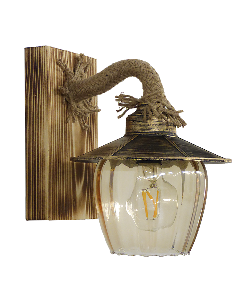 Απλίκα επιτοίχια ,ξύλινη με σχοινί ,πλαστικό καπέλο και γυαλί μελί R-98AP Δεν συμπεριλαμβάνεται ο λαμπτήρας