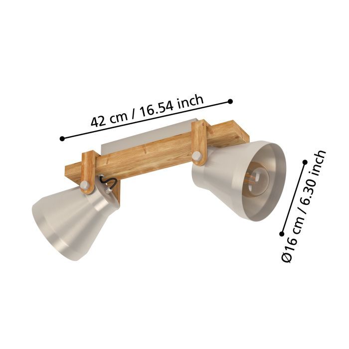Φωτιστικό Σποτ Κινητό Δίφωτο 2xE27 L585xB160xH250mm Χάλυβας-Ξύλο Ρουστίκ Καφέ Eglo Cawton 43949