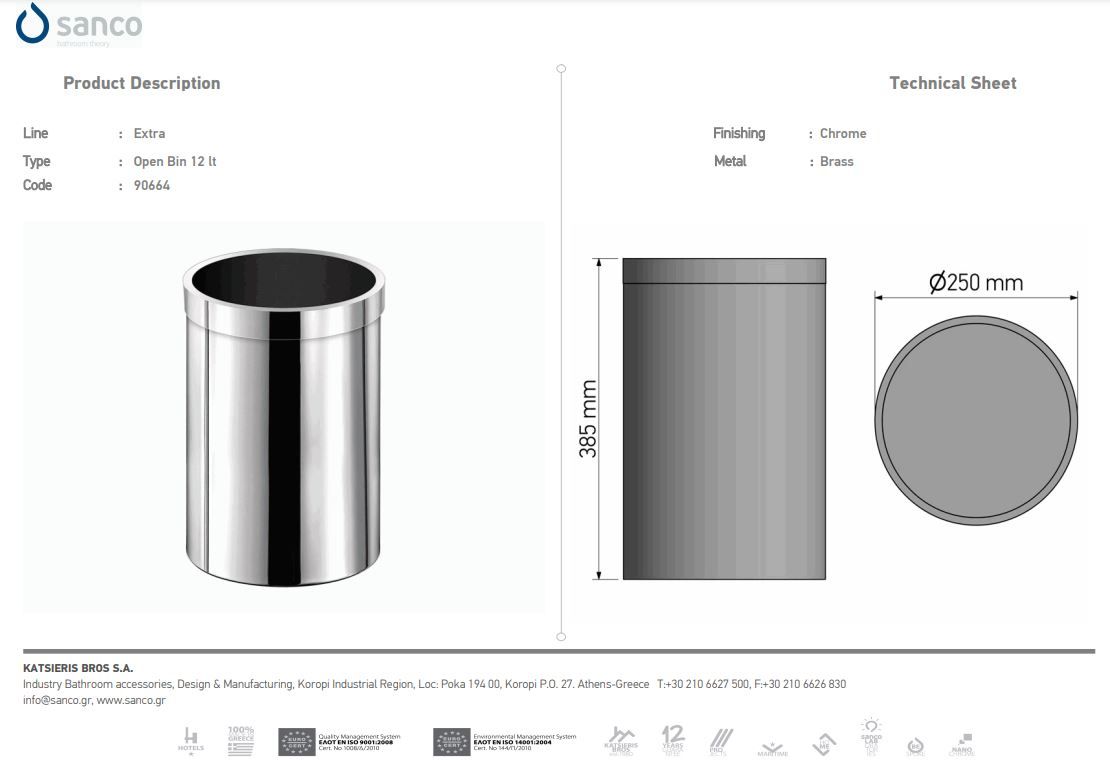 Χαρτοδοχείο Ανοιχτό 12lt Sanco Open Bins Brass White Mat 90664-M101