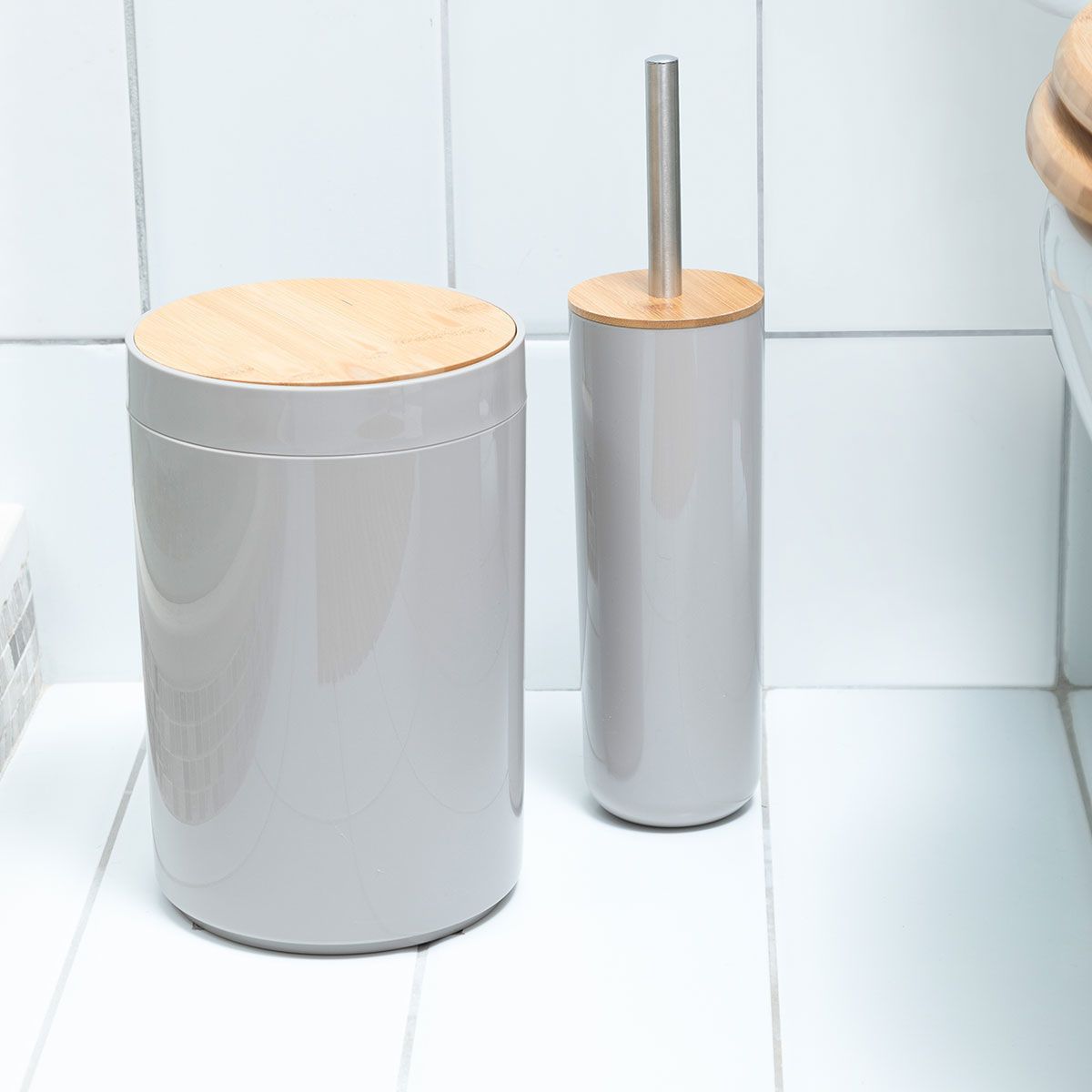 Χαρτοδοχείο 5lt Ø18 cm Πλαστικό Taupe με Καπάκι Παλλόμενο Bamboo Estia Home Art 02-8116