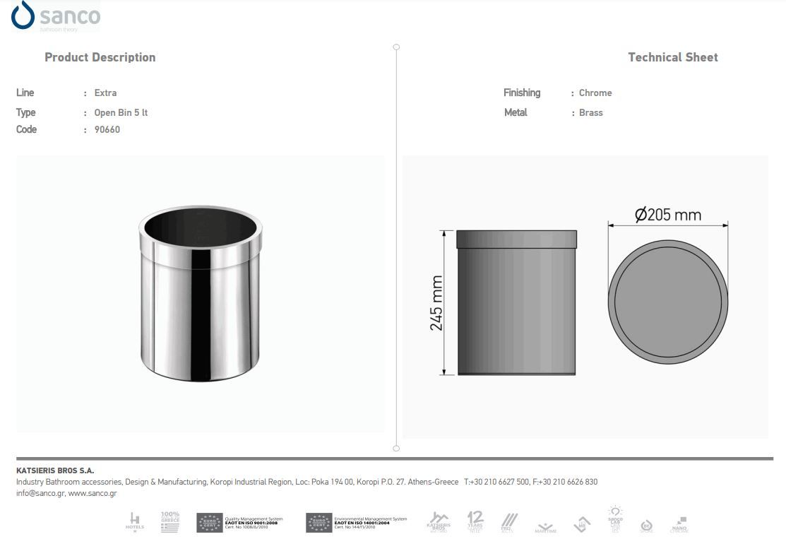 Χαρτοδοχείο 5lt Ανοιχτό Λευκό Ματ Sanco Brass Open Bins 90660-M101