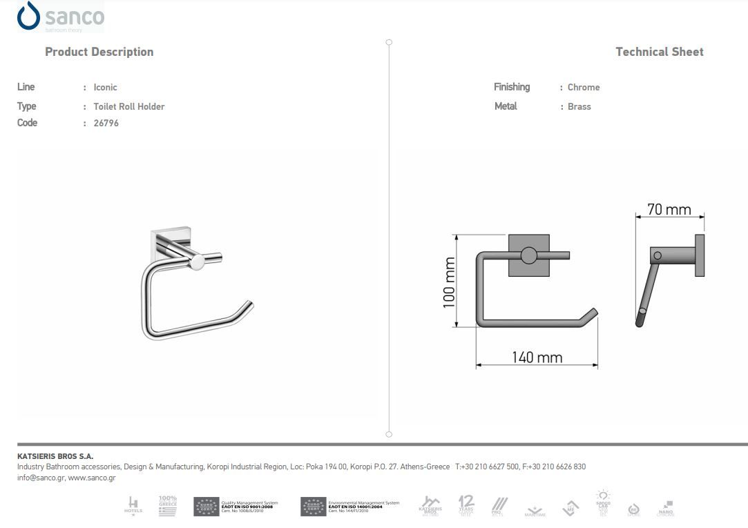 Χαρτοθήκη Ανοιχτή Sanco Iconic Brushed Nikel 26796-A73