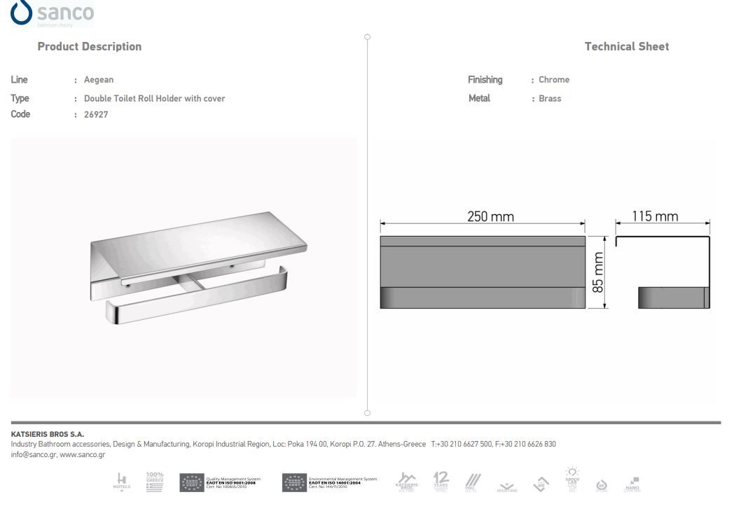 Περιγραφή: Χαρτοθήκη Σπεπαστή Διπλή (με καπάκι) Επίτοιχη