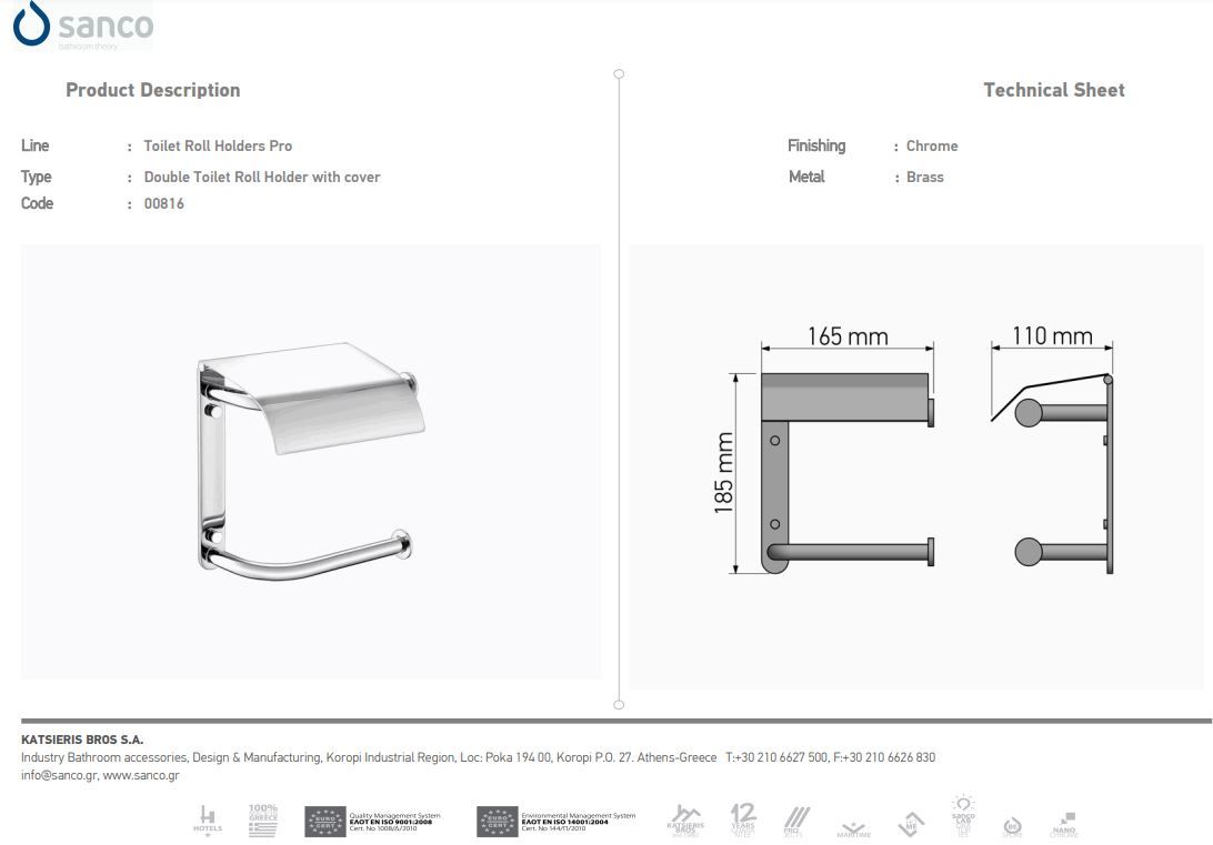 Χαρτοθήκη Διπλή με καπάκι Black Matt Sanco Toilet Roll Holders Pro 0816-M116