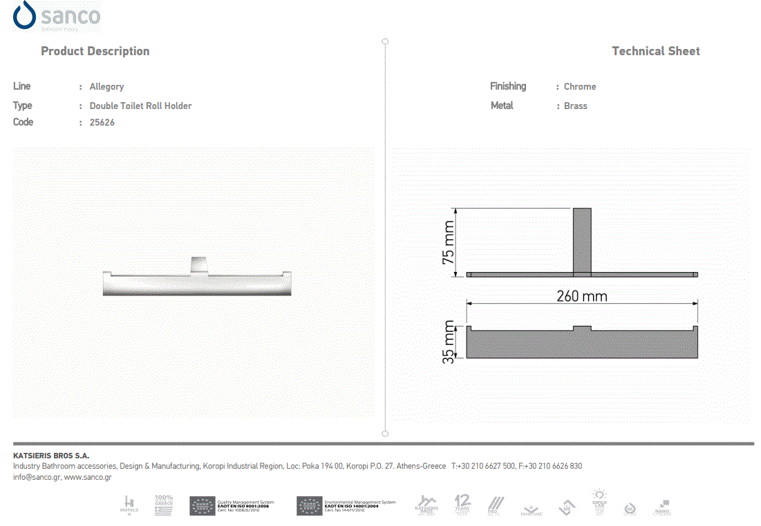 - Χαρτοθήκη Επιτοίχια Brushed Brass-Black Mat Sanco Allegory 25606-AB12-M116 Ειδική Τιμή 117,00 € Κανονική τιμή 150,00 €