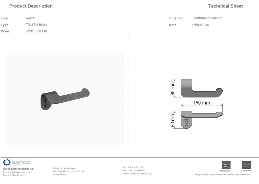 Ντισπένσερ Επίτοιχο Graphite Dark Sanco Avaton 120122-122Ειδική Τιμή 72,00 € Κανονική τιμή 80,00 € -