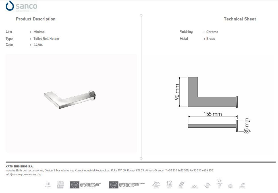 Χαρτοθήκη Επιτοίχια Sanco Minimal Antracite Grained 24206-M118