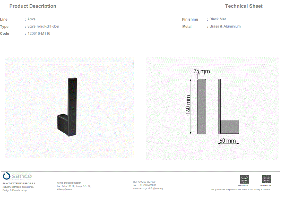 - Χαρτοθήκη Επιτοίχια Black Mat Sanco Agora 120606-M116 Ειδική Τιμή 22,50 € Κανονική τιμή 25,00 €