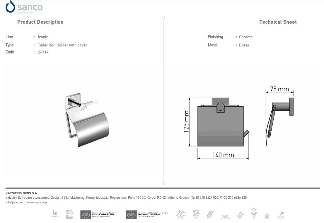 Χαρτοθήκη με Καπάκι Sanco Iconic Chrome 26717-A03
