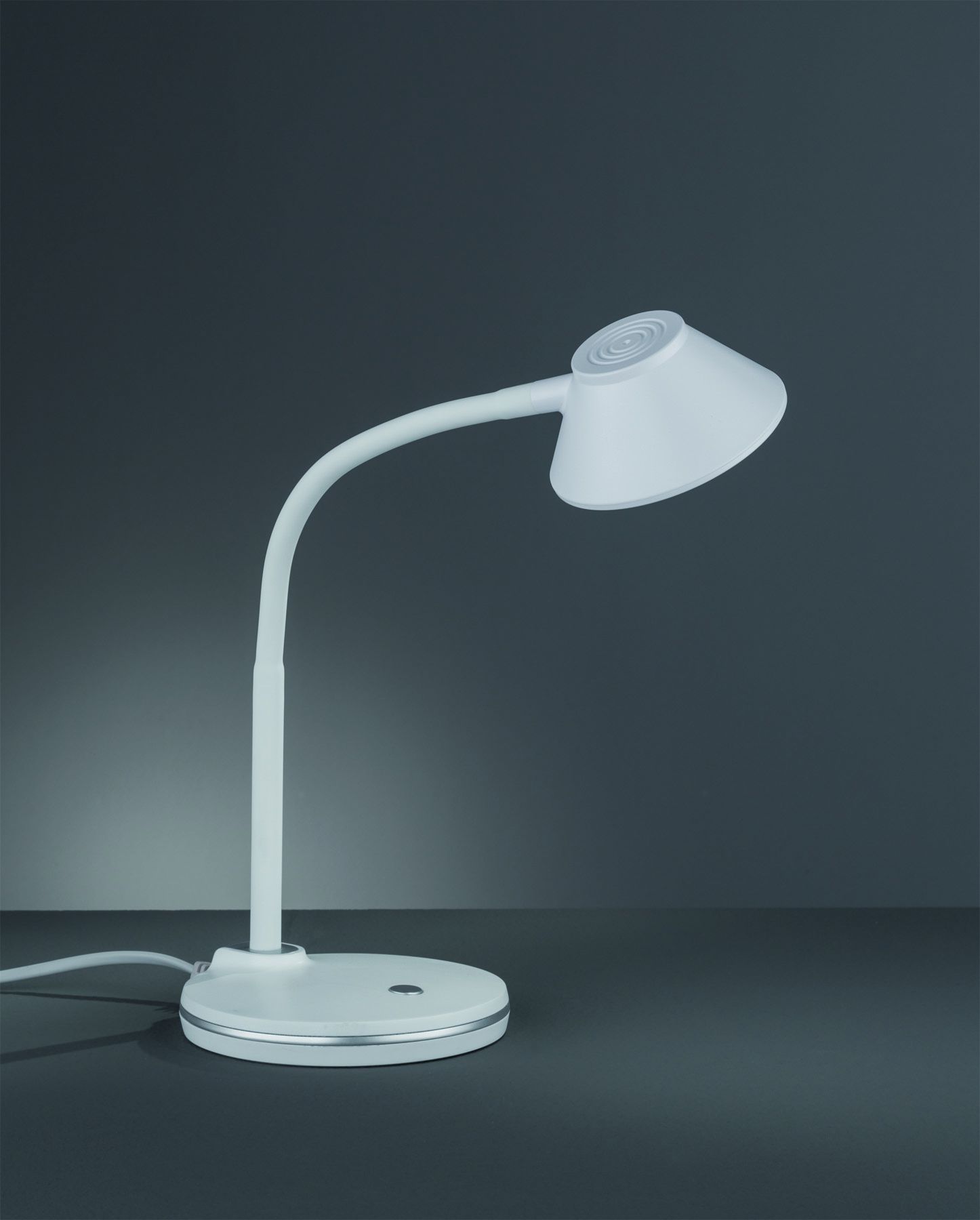 Φωτιστικό γραφείου της Trio Lighting με ενσωματωμένο LED και εύκαμπτο βραχίονα, σε λευκό χρώμα.