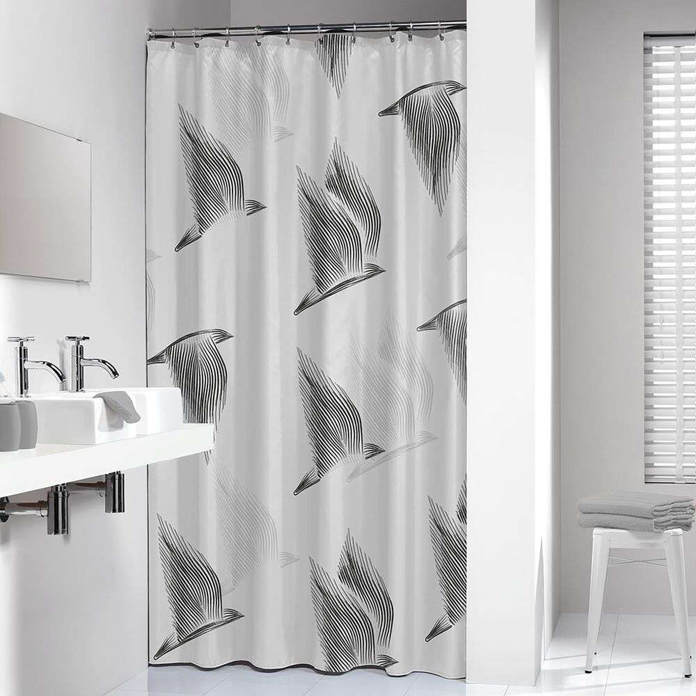 Κουρτίνα Μπάνιου Υφασμάτινη L180xH200 Sealskin Birds Black 800141