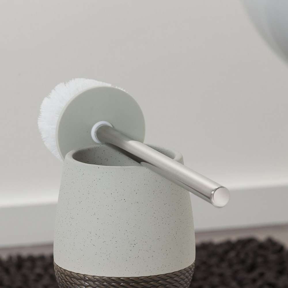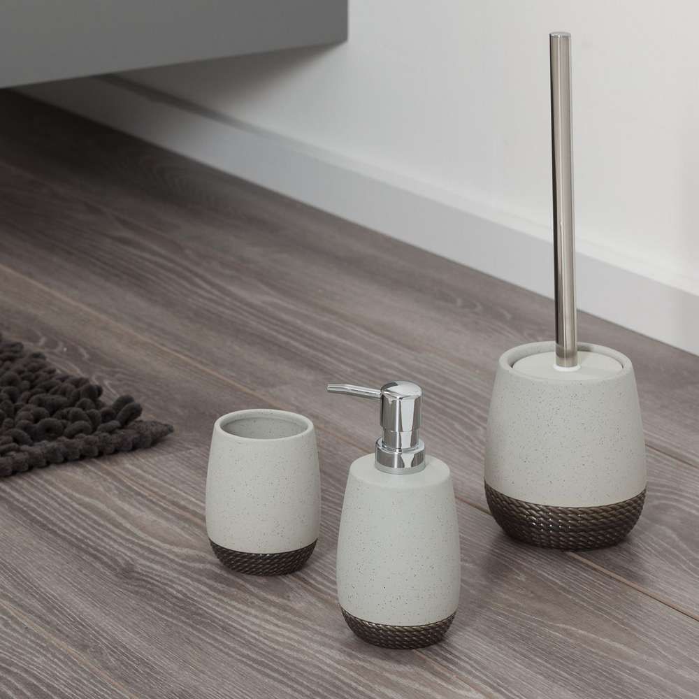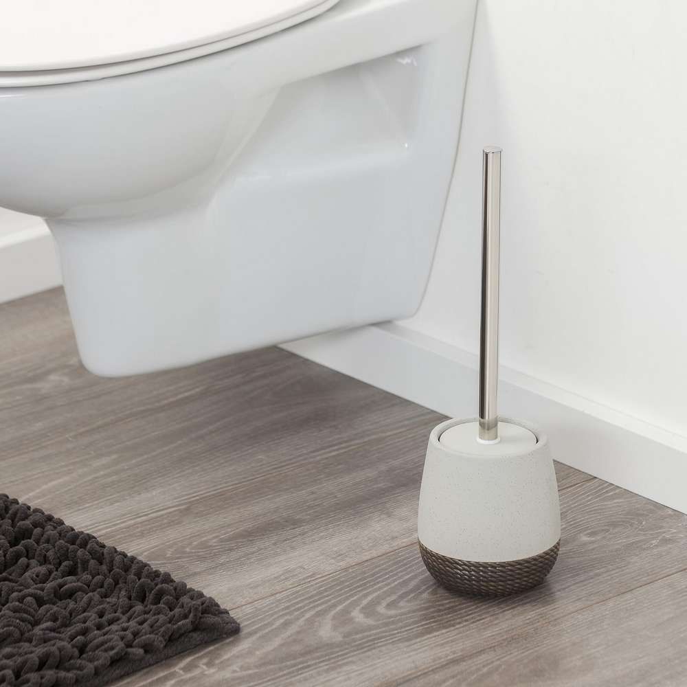Δύο αποχρώσεις του γκρι σε ένα πιγκάλ τουαλέτας Sealskin. Το κάτω μέρος έχει μια απτή δομή με σπάγκο. Ταιριάζει απόλυτα σε ένα επαρχιακό εσωτερικό.