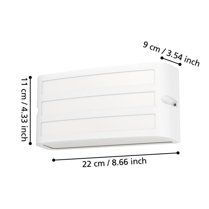 Μήκος Φωτιστικού(σε χιλ./ίντσα):220 / 8,66Ύψος Φωτιστικού(σε χιλ./ίντσα):110 / 4,33Εξοχή Φωτιστικου(σε χιλ./ίντσα):90 / 3,54Καθαρό Βάρος (kg):0,51
