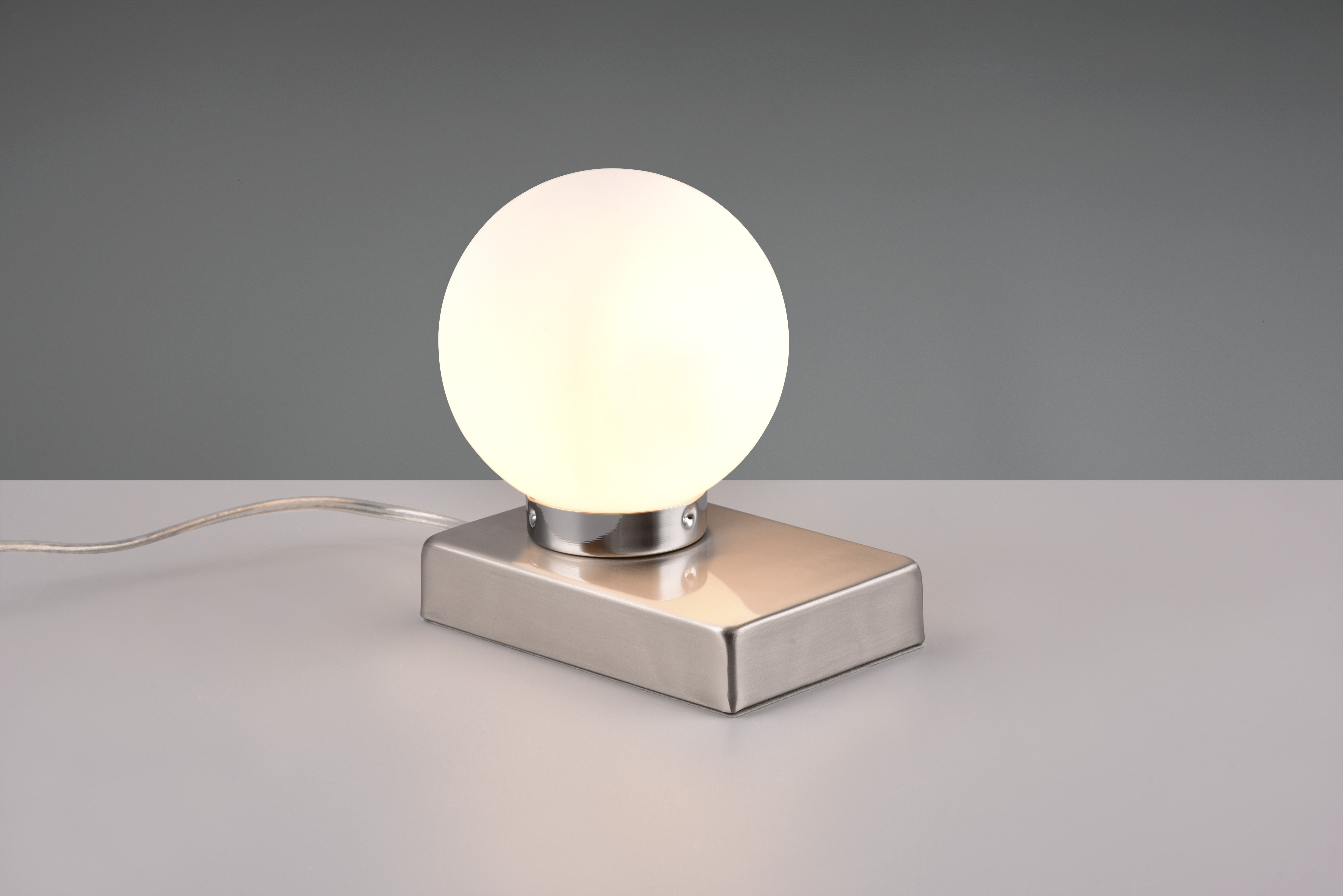 Equipped with a practical touch function, DAVI can be placed almost anywhere! Placed next to the bed or on a chest of drawers, the modern table lamp provides a discreet, pleasant light. The white glass shade creates a great contrast to the matt nickel design of the light. For energy-saving lighting, it is recommended to use an LED illuminant. These are an optimal alternative to conventional halogen lamps and stand for a high quality of light and energy savings of up to 80%. In addition, LED lamps help you benefit from a long service life, low heat generation and at the same time protect the environment.