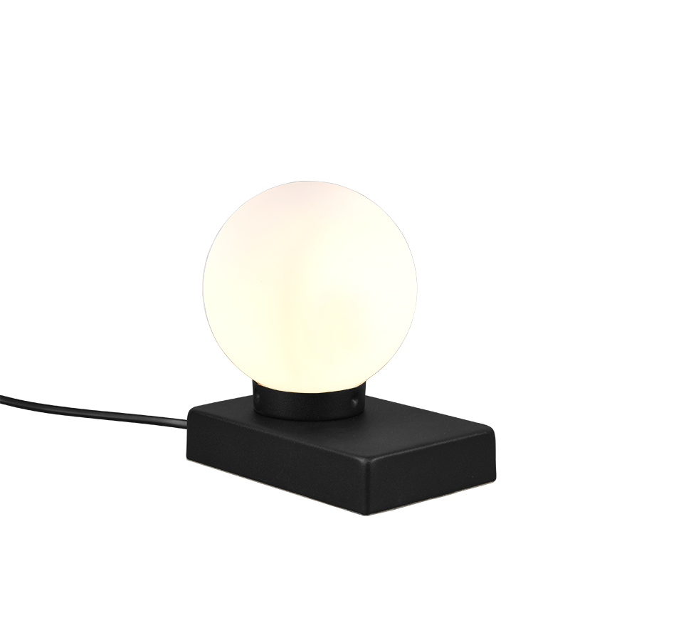 Equipped with a practical touch function, DAVI can be placed almost anywhere! Placed next to the bed or on a chest of drawers, the modern table lamp provides a discreet, pleasant light. The white glass shade creates a great contrast to the black matt design of the light. For energy-saving lighting, it is recommended to use an LED illuminant. These are an optimal alternative to conventional halogen lamps and stand for a high quality of light and energy savings of up to 80%. In addition, LED lamps help you benefit from a long service life, low heat generation and at the same time protect the environment.