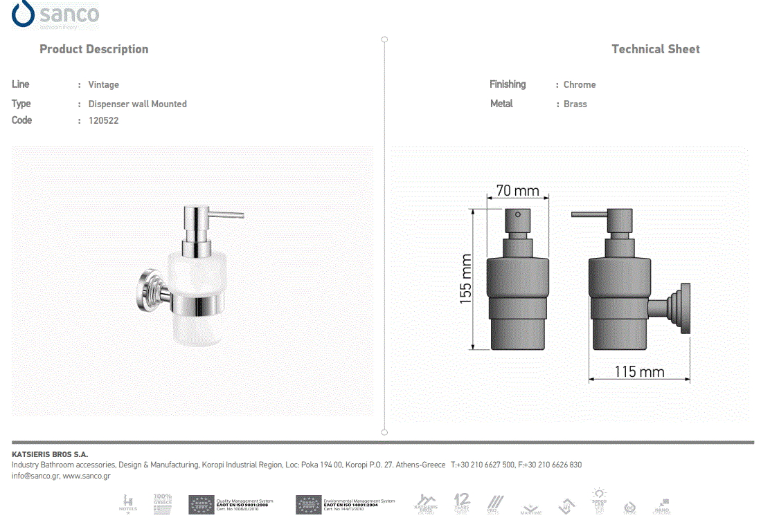 Περιγραφή: Ντισπένσερ Επίτοιχο