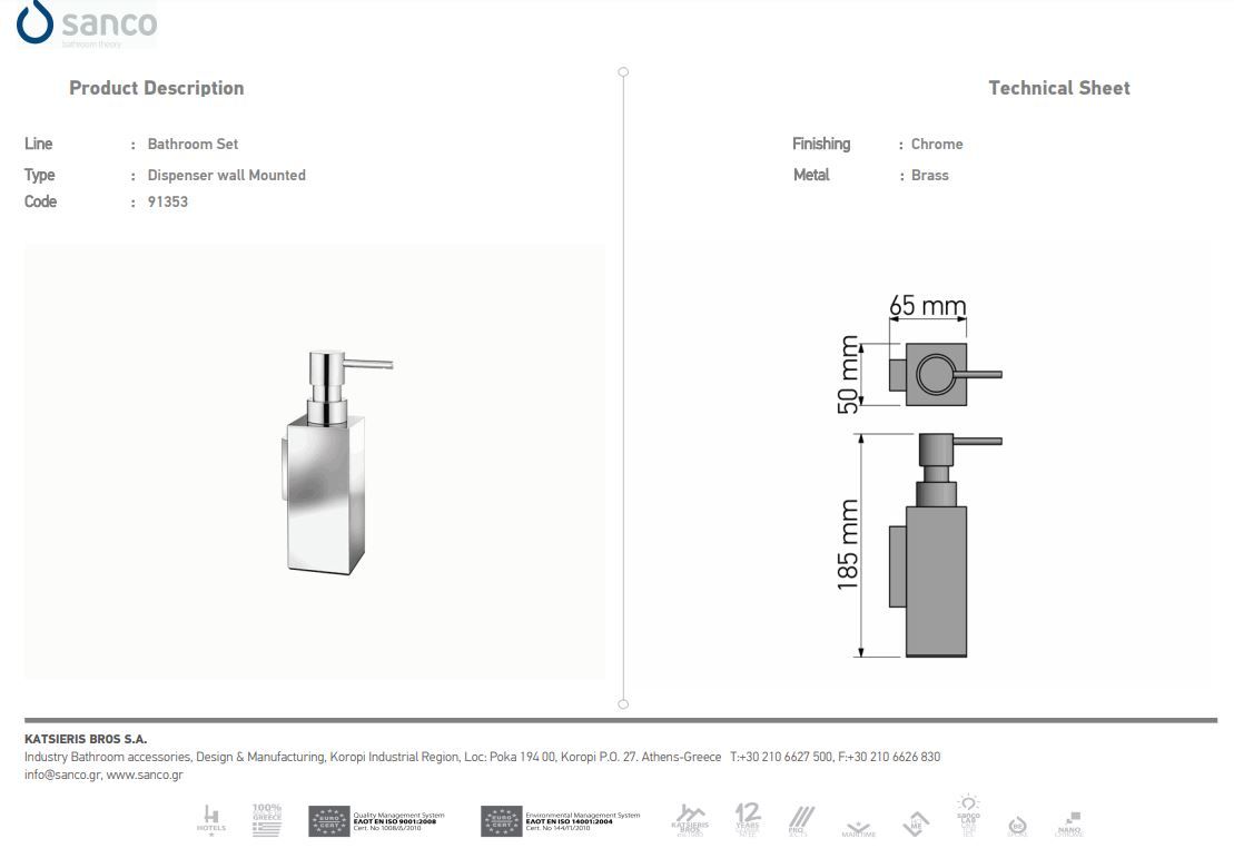 Ντισπένσερ Dispenser Επίτοιχο 500ml Sanco Metallic Bathroom Set 91351-Α03-500Ειδική Τιμή 67,50 € Κανονική τιμή 75,00 € -