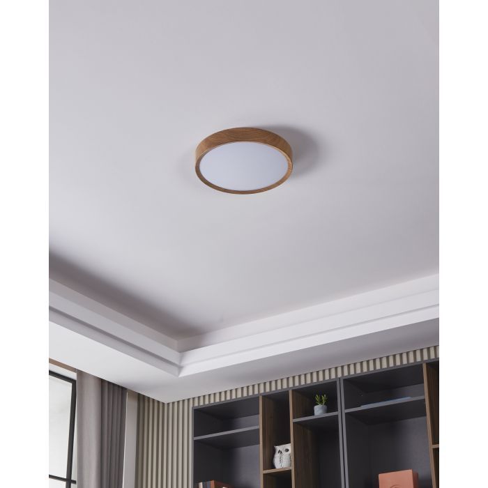 LED panel εξωτερικής τοποθέτησης της Eglo, στρογγυλό, με ισχύ 16.8W. Εκπέμπει θερμό λευκό φως, το οποίο αποδίδεται στην κλίμακα Kelvin με τιμές από 2400Κ έως 3800Κ. Οι τόνοι του θερμού λευκού είναι πιο κίτρινοι σε σχέση με το φυσικό φως.