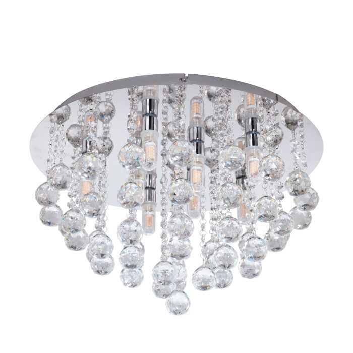 Μοντέρνα πλαφονιέρα οροφής της Eglo σε ασημί χρώμα, με κρύσταλλα. Διαθέτει ντουί για λαμπτήρες G9.