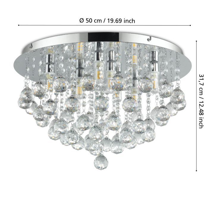 Eglo Almonte Μοντέρνα Πλαφονιέρα Οροφής με Ντουί G9 με Κρύσταλλα σε Ασημί χρώμα 50cm 97699