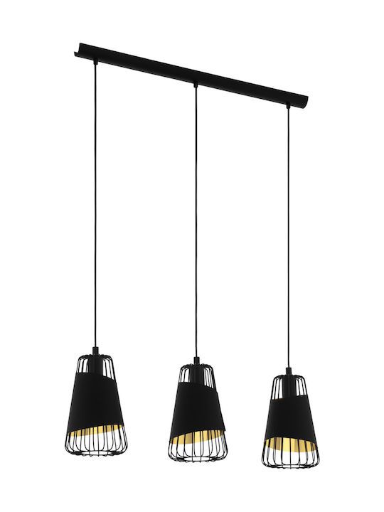 Eglo Austell Vintage Κρεμαστό Φωτιστικό Τρίφωτο Ράγα με Ντουί E27 σε Μαύρο Χρώμα 49448