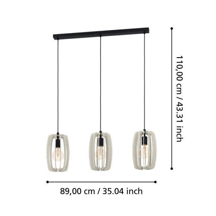 Eglo Bajazzara Μοντέρνο Κρεμαστό Φωτιστικό Τρίφωτο Ράγα με Ντουί E27 σε Γκρι Χρώμα 900503