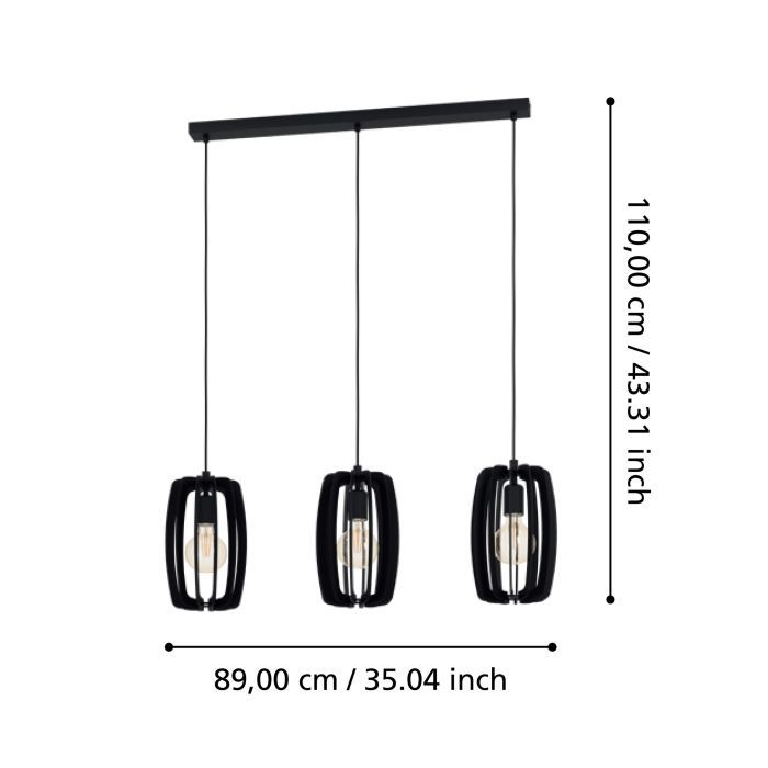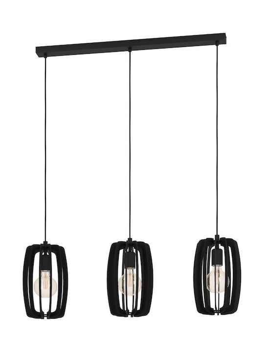 Eglo Bajazzara Μοντέρνο Κρεμαστό Φωτιστικό Τρίφωτο Ράγα με Ντουί E27 σε Μαύρο Χρώμα 900505