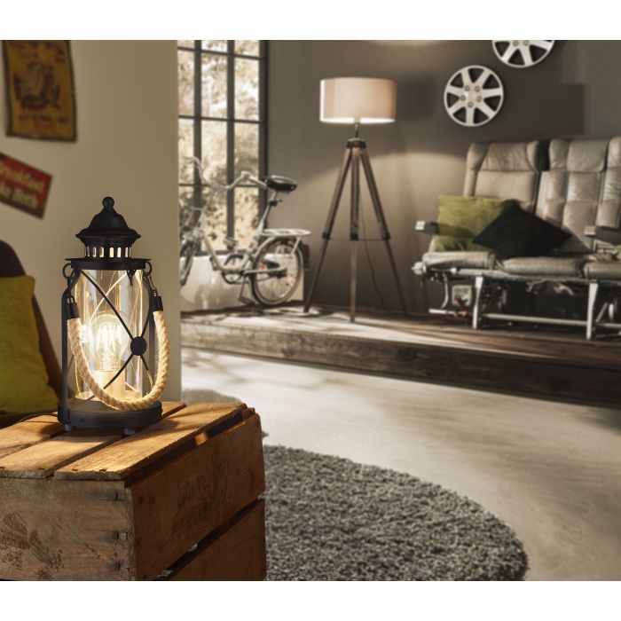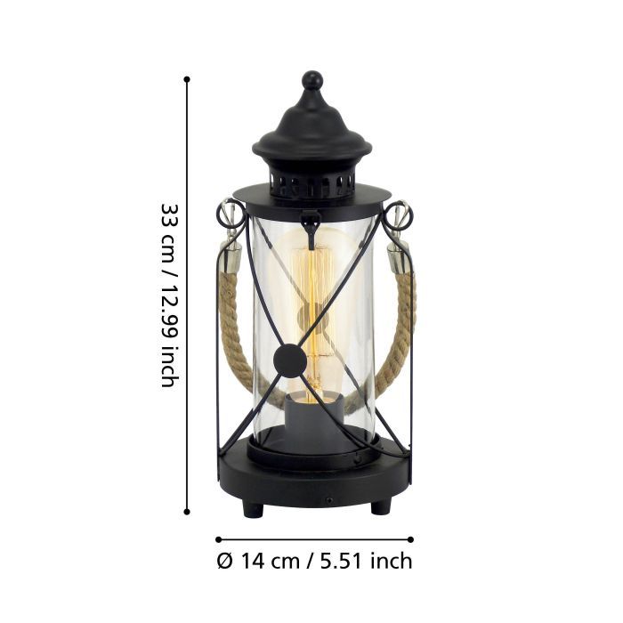 Διακοσμητικό φωτιστικό με σχήμα φαναριού της Eglo, σε μαύρο χρώμα. Διαθέτει ανταλλάξιμο λαμπτήρα συμβατό με ντουί E27.
