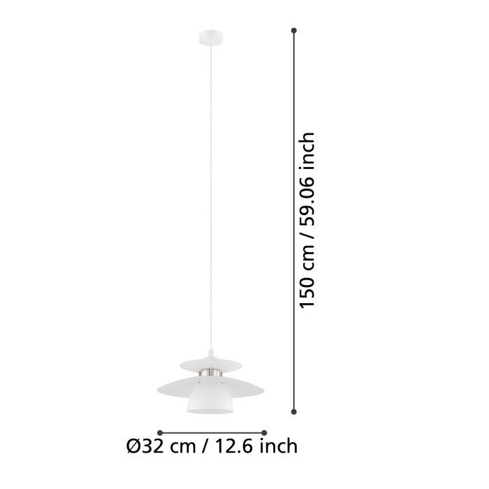 Μονόφωτο κρεμαστό φωτιστικό από την εταιρεία Eglo σε λευκό χρώμα, με υποδοχή για έναν λαμπτήρα και ντουί E27. Διαθέτει vintage σχεδιασμό που προσδίδει στυλ και χαρακτήρα στον χώρο σας, ενώ ταυτόχρονα δημιουργεί μια ατμόσφαιρα που συνδυάζει την αισθητική του παρελθόντος με τον σύγχρονο σχεδιασμό. Είναι κατασκευασμένο από μέταλλο, ένα υλικό δημοφιλή στα κρεμαστά φωτιστικά οροφής, καθώς πέρα από τη μοντέρνα νότα που προσφέρει, είναι ιδιαίτερα ανθεκτικό στον χρόνο. Καθαρίζεται εύκολα με ένα πανί.