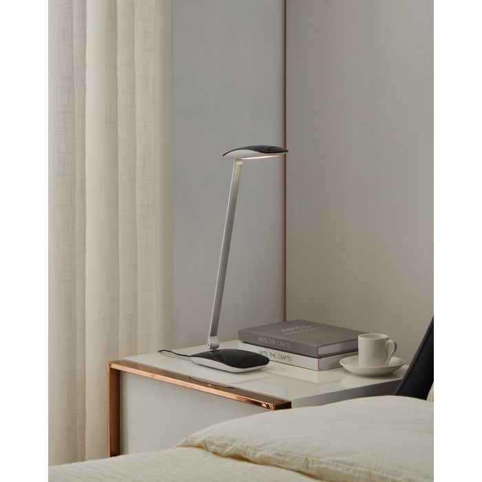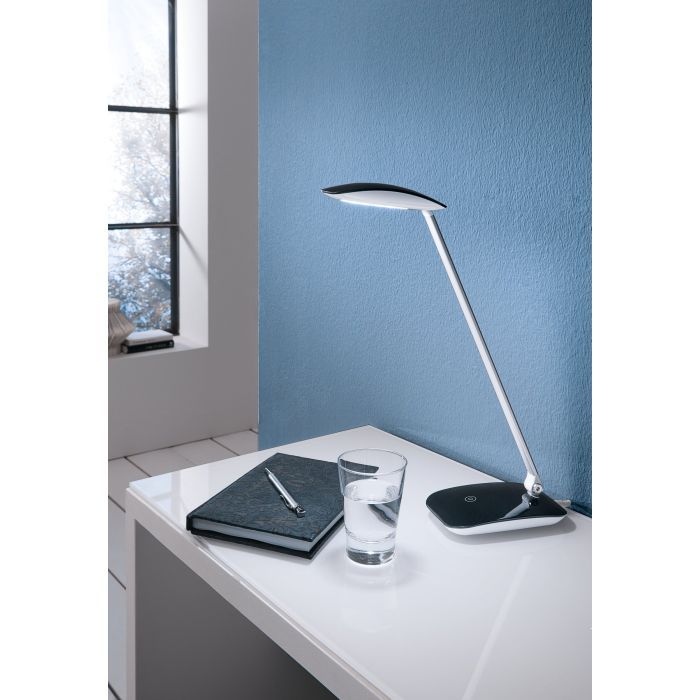 Φωτιστικό γραφείου της Eglo με ενσωματωμένο LED και σπαστό βραχίονα, σε μαύρο χρώμα.