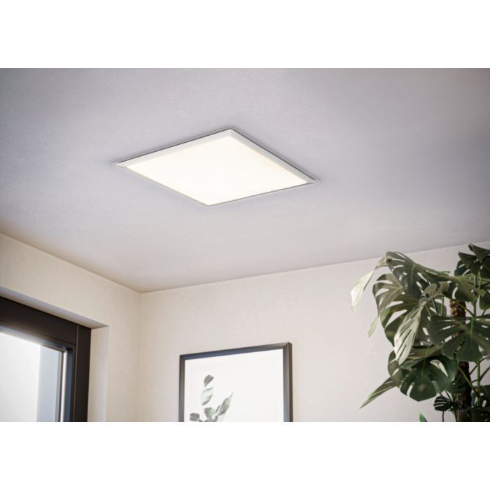 LED panel εξωτερικής τοποθέτησης της Eglo, παραλληλόγραμμο, με ισχύ 24W. Εκπέμπει θερμό λευκό φως, το οποίο αποδίδεται στην κλίμακα Kelvin με τιμές από 2400Κ έως 3800Κ. Οι τόνοι του θερμού λευκού είναι πιο κίτρινοι σε σχέση με το φυσικό φως.