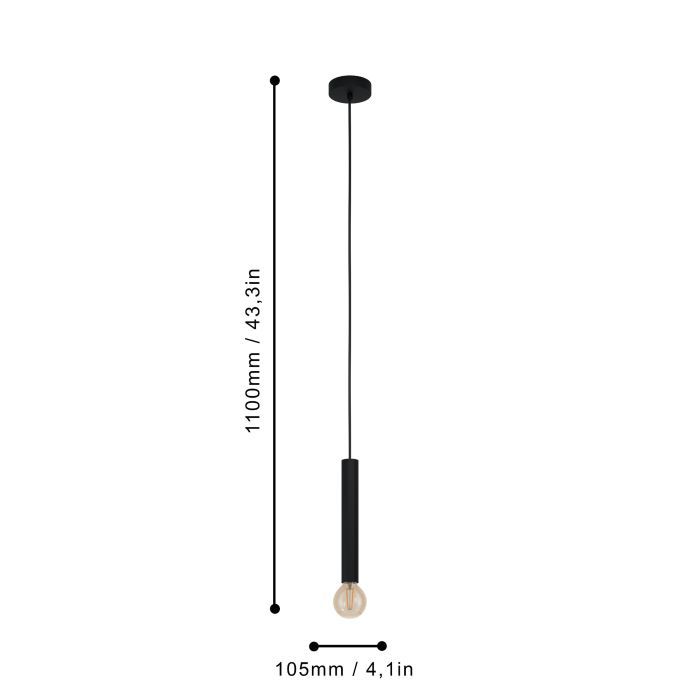 Μονόφωτο κρεμαστό φωτιστικό από την εταιρεία Eglo σε μαύρο χρώμα, με υποδοχή για έναν λαμπτήρα και ντουί E27. Διαθέτει vintage σχεδιασμό που προσδίδει στυλ και χαρακτήρα στον χώρο σας, ενώ ταυτόχρονα δημιουργεί μια ατμόσφαιρα που συνδυάζει την αισθητική του παρελθόντος με τον σύγχρονο σχεδιασμό. Είναι κατασκευασμένο από μέταλλο, ένα υλικό δημοφιλή στα κρεμαστά φωτιστικά οροφής, καθώς πέρα από τη μοντέρνα νότα που προσφέρει, είναι ιδιαίτερα ανθεκτικό στον χρόνο. Καθαρίζεται εύκολα με ένα πανί.