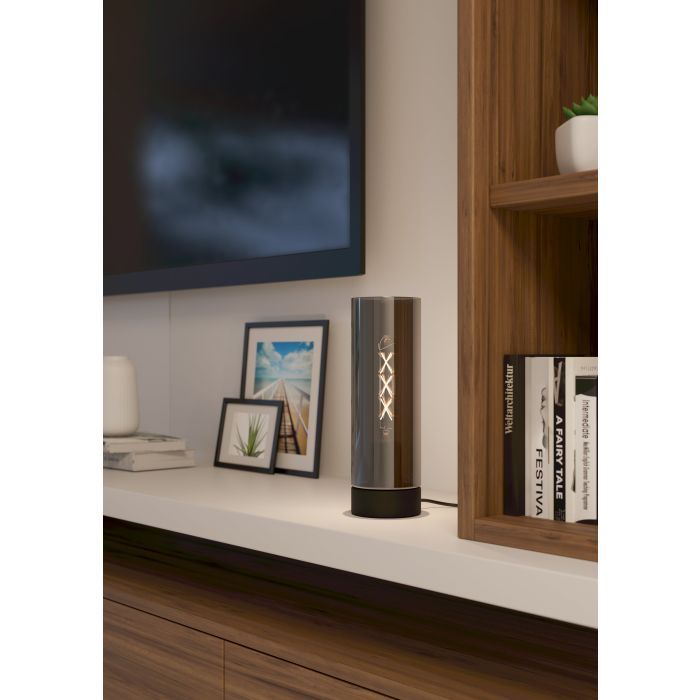 Επιτραπέζιο διακοσμητικό φωτιστικό της Eglo, σε μαύρο χρώμα. Διαθέτει ανταλλάξιμο λαμπτήρα συμβατό με ντουί E27.