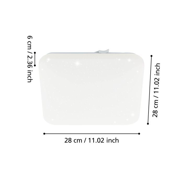 LED panel εξωτερικής τοποθέτησης της Eglo, τετράγωνο, με ισχύ 11.5W. Εκπέμπει θερμό λευκό φως, το οποίο αποδίδεται στην κλίμακα Kelvin με τιμές από 2400Κ έως 3800Κ. Οι τόνοι του θερμού λευκού είναι πιο κίτρινοι σε σχέση με το φυσικό φως.