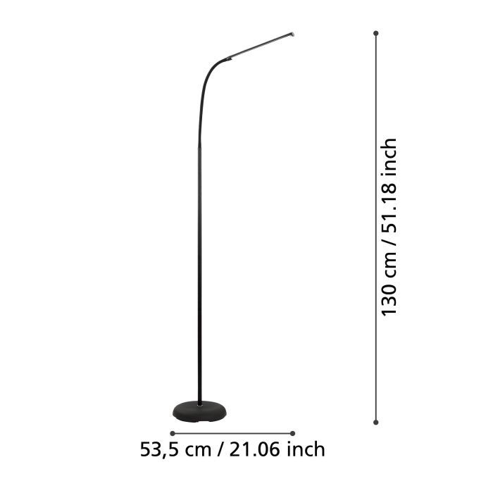 Φωτιστικό δαπέδου Laroa της Eglo σε μαύρο χρώμα, με ενσωματωμένο LED. Το ενσωματωμένο LED εκπέμπει φυσικό λευκό φως το οποίο αποδίδεται στην κλίμακα Kelvin με τιμές από 3000Κ έως 4200Κ. Οι τόνοι του φυσικού λευκού ομοιάζουν με το φως της ημέρας και δεν περιέχουν άλλες αποχρώσεις.