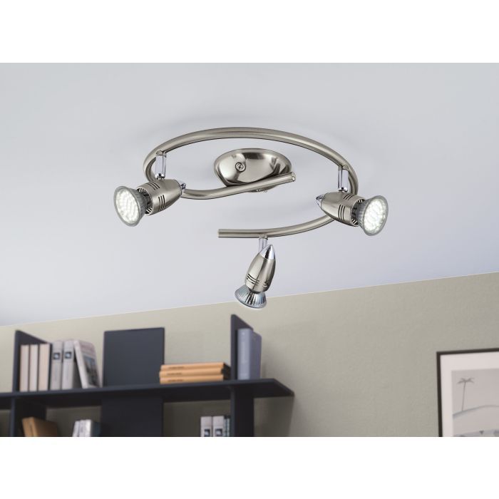 Τριπλό σποτ με ντουί GU10 της Eglo σε ασημί χρώμα. Διαθέτει κομψό σχεδιασμό και δημιουργεί ένα ζεστό περιβάλλον στον χώρος σας.