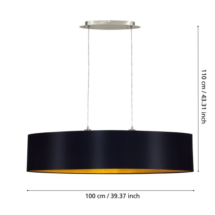 Eglo Maserlo Μοντέρνο Κρεμαστό Φωτιστικό Δίφωτο Ράγα με Ντουί E27 σε Μαύρο Χρώμα 31616