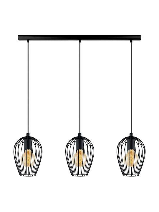 Eglo Newtown Vintage Κρεμαστό Φωτιστικό Τρίφωτο Ράγα με Ντουί E27 σε Μαύρο Χρώμα 49478
